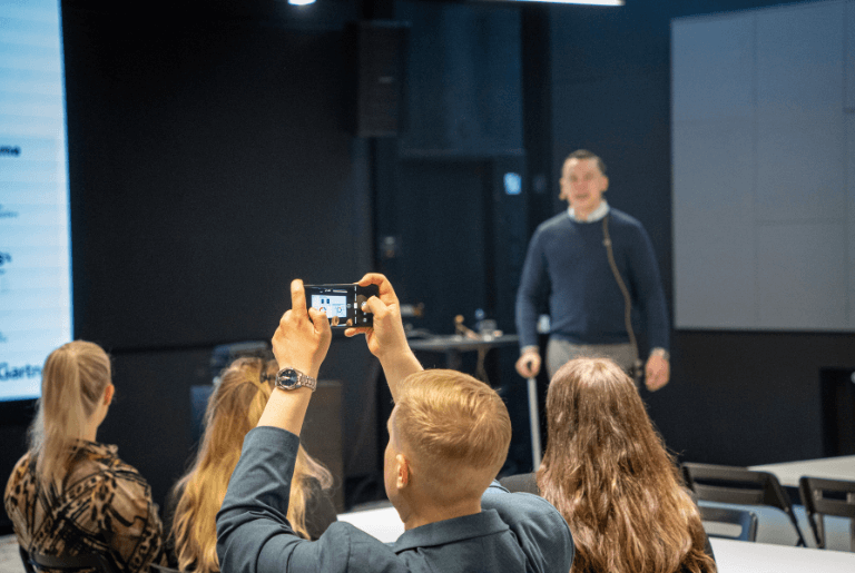 Miljöönä Kampin Innovation Home oli tyylikäs. Keskeiselle paikalle oli helppo löytää ja tekniikka pelasi Dustin Event Arena -tilassa hienosti. Lounaaksi nautittiin tuhtia Pasta Bolognesea. Ruokaa oli tarjolla niin vegaanisena kuin lihaversionakin, erittäin herkullisen ja runsaan salaattipöydän kera.